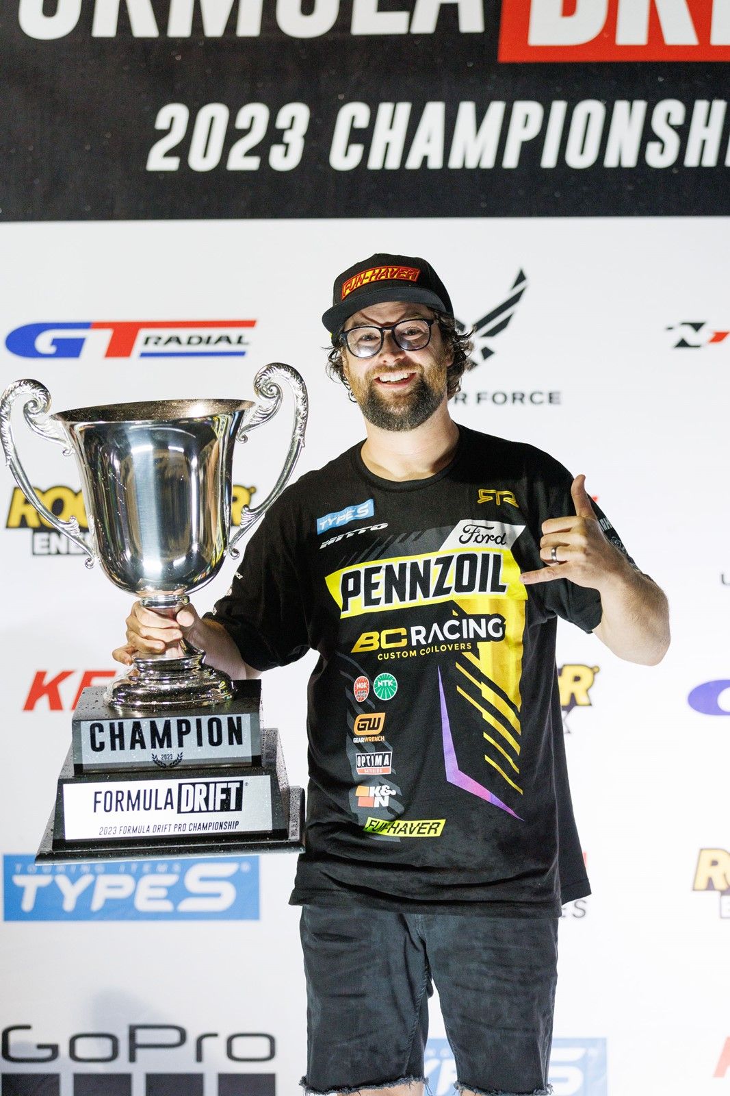 Ford, firma RTR Vehicles oraz kierowca Chelsea DeNofa świętują zakończenie sezonu na najwyższym podium mistrzostw Formula Drift 2023. DeNofa startował z zespołem RTR za kierownicą Mustanga Spec 5-FD, który dzieli DNA z nowym Fordem Mustangiem siódmej generacji z rocznika modelowego 2024.