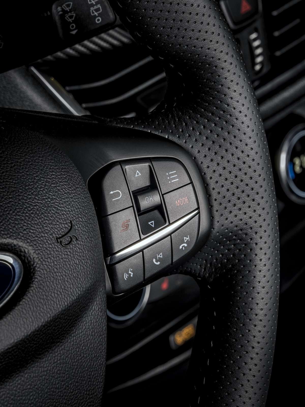 Ponadto, trzy tryby działania systemu ESC umożliwiają kierowcom wybór pomiędzy pełną kontrolą systemu, trybem poślizgu z ograniczoną interwencją; i pełną dezaktywacją systemu. Zaprojektowany wyłącznie do użytku na torze wyścigowym, dostępny jako część opcjonalnego, wyczynowego pakietu Ford Performance, system Launch Control, pozwoli kierowcom osiągnąć maksymalną satysfakcję z powtarzalnych, szybkich przyspieszeń, uzyskiwanych przy ruszaniu ze startu zatrzymanego. System włączany jest przez kierowcę za pomocą przycisków sterujących na kierownicy, uruchamia przekazujący dane wyświetlacz cyfrowy w 12,3 calowym zestawie wskaźników. Przytrzymanie otwartej przepustnicy informuje system, że należy zwiększyć obroty silnika i automatycznie utrzymywać je na granicy dopuszczalnych obrotów, co na ekranie wyświetlacza powoduje wypełnianie wskaźnika informującego, kiedy samochód jest gotowy do startu. Całkowite zwolnienie sprzęgła umożliwia najszybsze ruszenie ze startu zatrzymanego z udziałem elektronicznego systemu kontroli stabilności (ESC), z kontrolą trakcji, kontrolą wektorowania momentu napędowego i układem kompensacji momentu skręcającego na kierownicy, dzięki odpowiedniej kontroli dostarczanej mocy i momentu obrotowego.