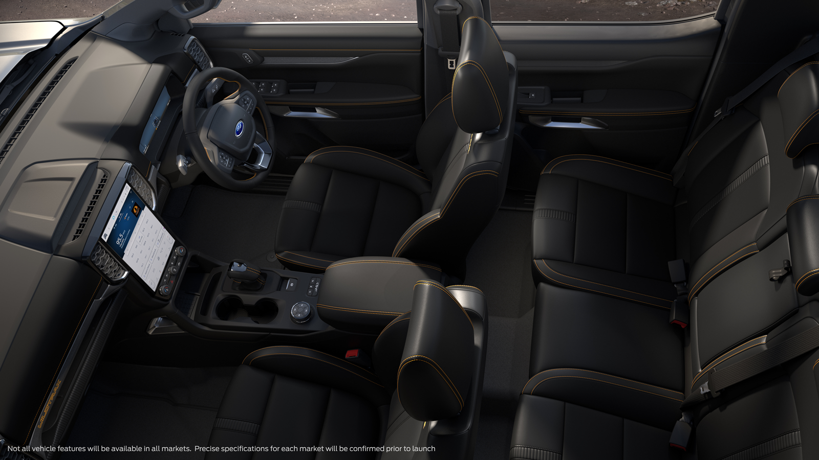 Ranger Limited może pochwalić się również bogatym wyposażeniem standardowym, obejmującym podgrzewaną kierownicę obszytą materiałem Sensico™ opracowanym przez Forda, skórzane fotele Soho z przetłoczeniami w stylu Apex oraz konsolę pokrytą miękkim winylem.