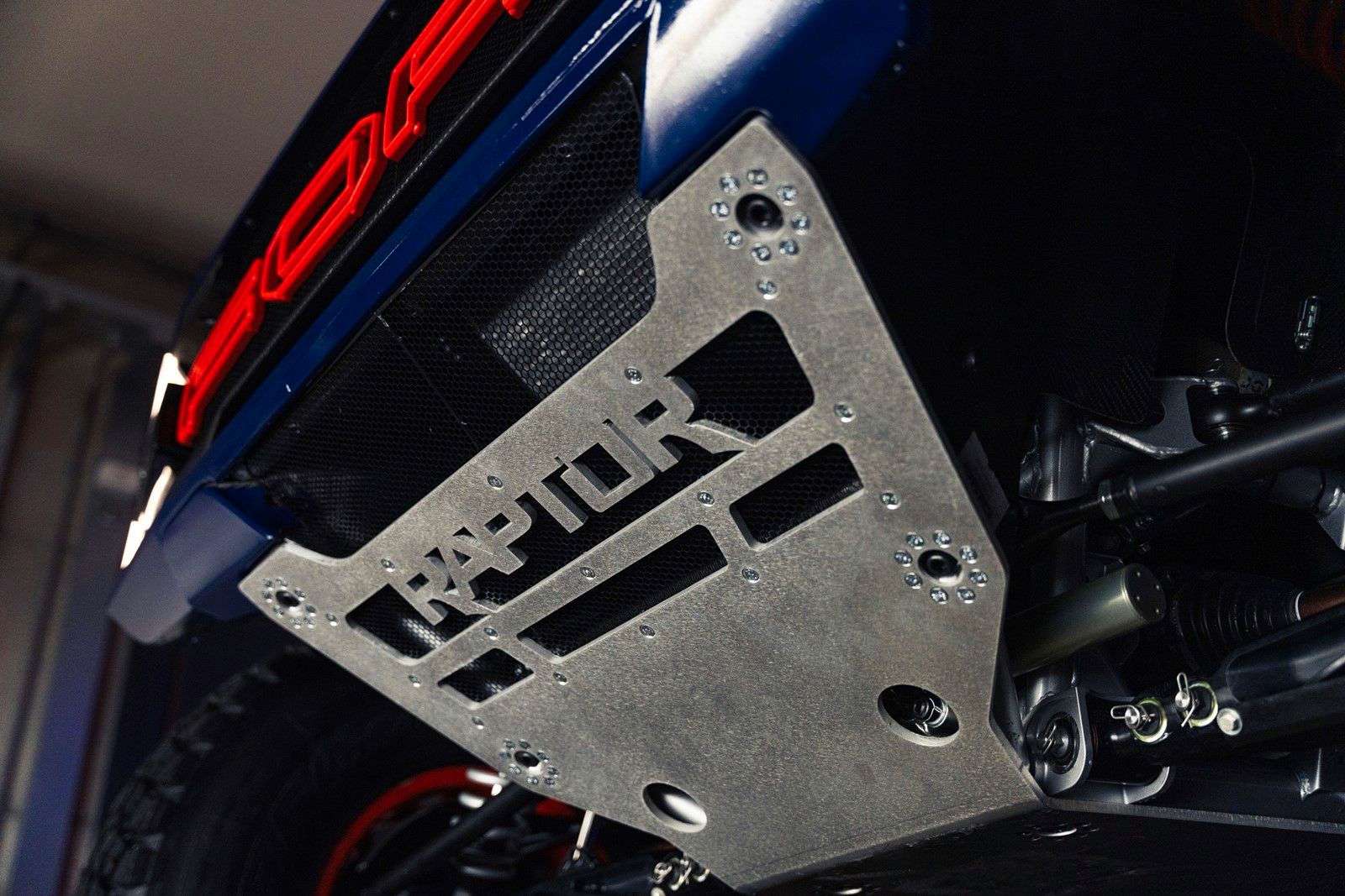 ▪ Zaawansowane zawieszenie: Ford Raptor T1+ jest wyposażony w przednie i tylne zawieszenie niezależne z podwójnymi wahaczami, skonstruowane we współpracy z firmą Fox, która dostarczyła regulowane amortyzatory ustawiane w trzech i czterech pozycjach, z zewnętrznym obejściem i zewnętrznymi zbiornikami płynu, zapewniające doskonałe prowadzenie i odporne na uszkodzenia w ekstremalnych warunkach.