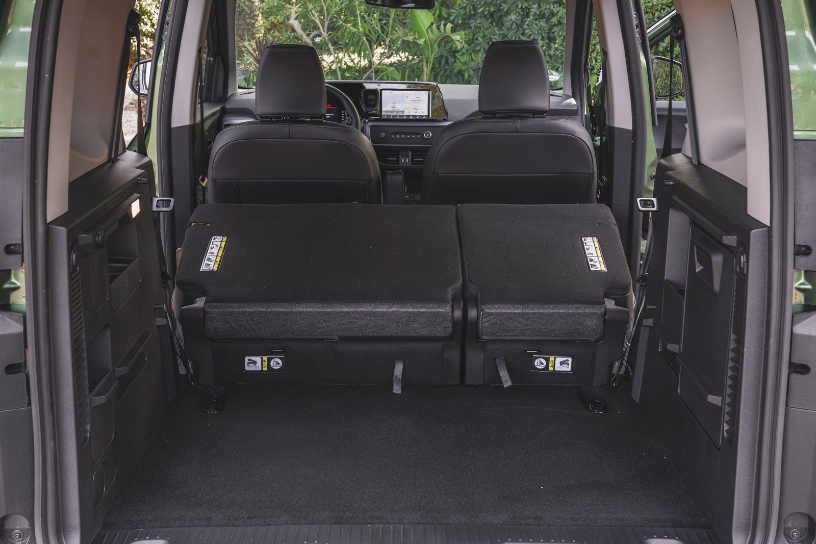 W drugim rzędzie foteli trójka pasażerów Tourneo Couriera znajdzie więcej miejsca nad głową i na ramiona, niż w poprzedniej generacji modelu. Siedzenia są dzielone w proporcji 60/40, a ich składanie i pochylanie ułatwia przewożenie przedmiotów o długości do 1,4 metra.