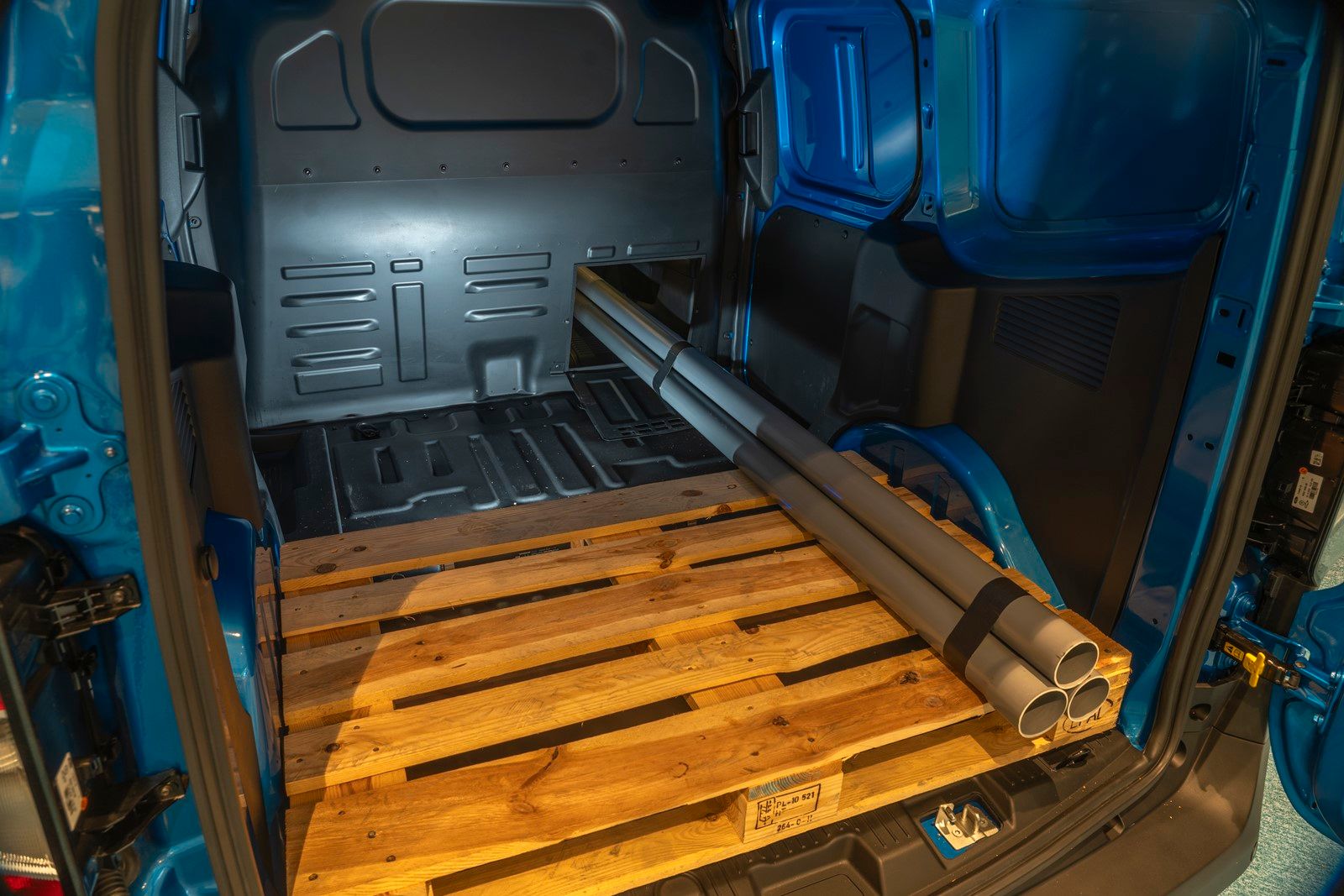Aby utrzymać bagażnik w porządku – lub pozostawić miejsce dla psów – właściciele mogą zabłocony ekwipunek lub luźne przedmioty schować w nowych schowkach wbudowanych w panele boczne. Po złożeniu tylnych siedzeń, Tourneo Courier oferuje dużą przestrzeń na większe przedmioty, a bagażnik ma maksymalną pojemność do 2162 litrów.
