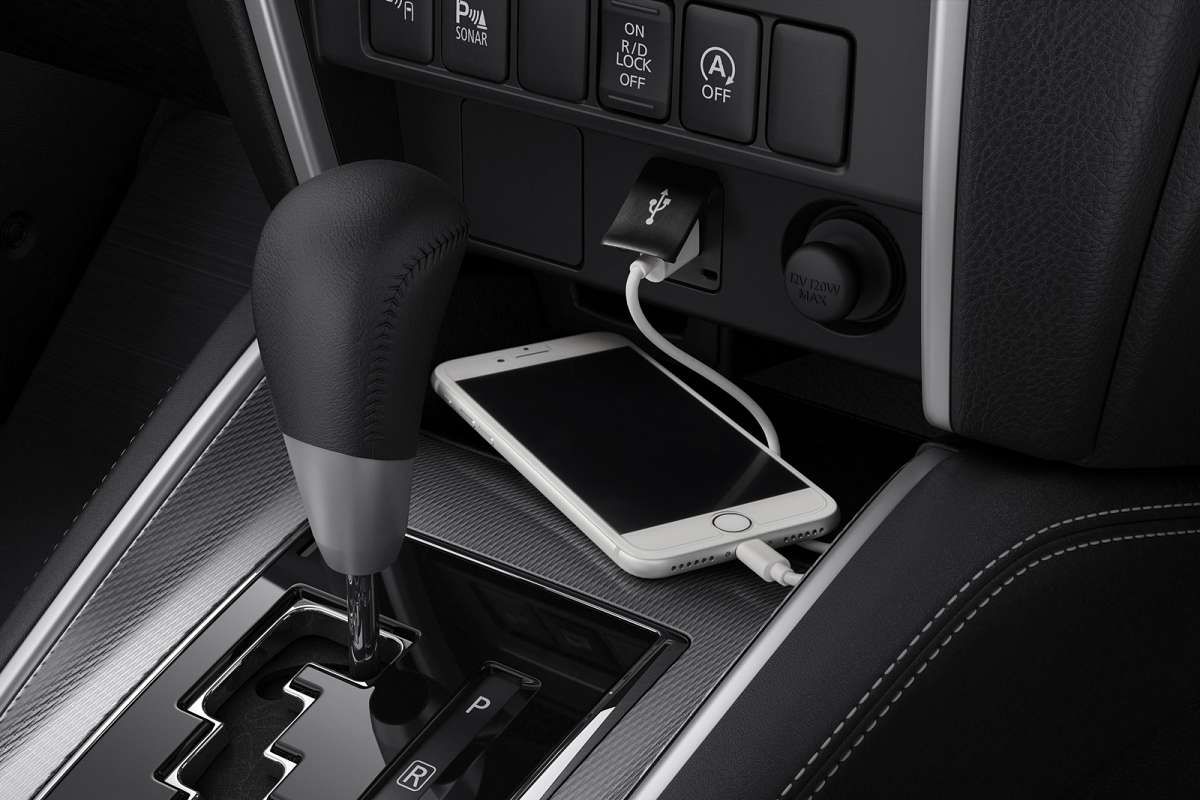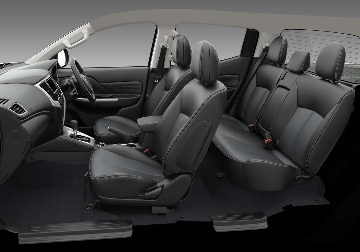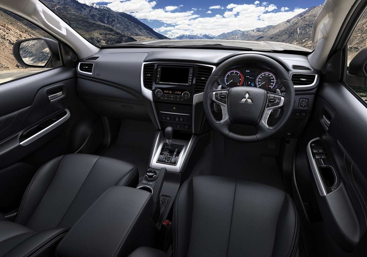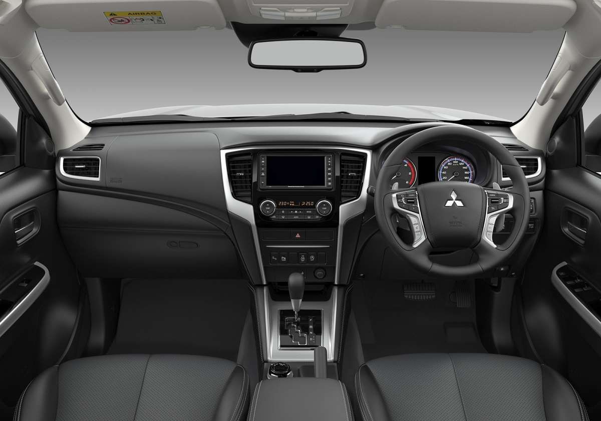 Zmodernizowane wnętrze TRITONA/L200 stawia na nowoczesność i solidność, do czego przyczynia się wspólna ramka zespołu przełączników i wylotów powietrza. Miękkie powierzchnie oraz przeszycia na konsoli między fotelami, na podłokietnikach i w rejonie hamulca postojowego dodają wnętrzu luksusowego charakteru.