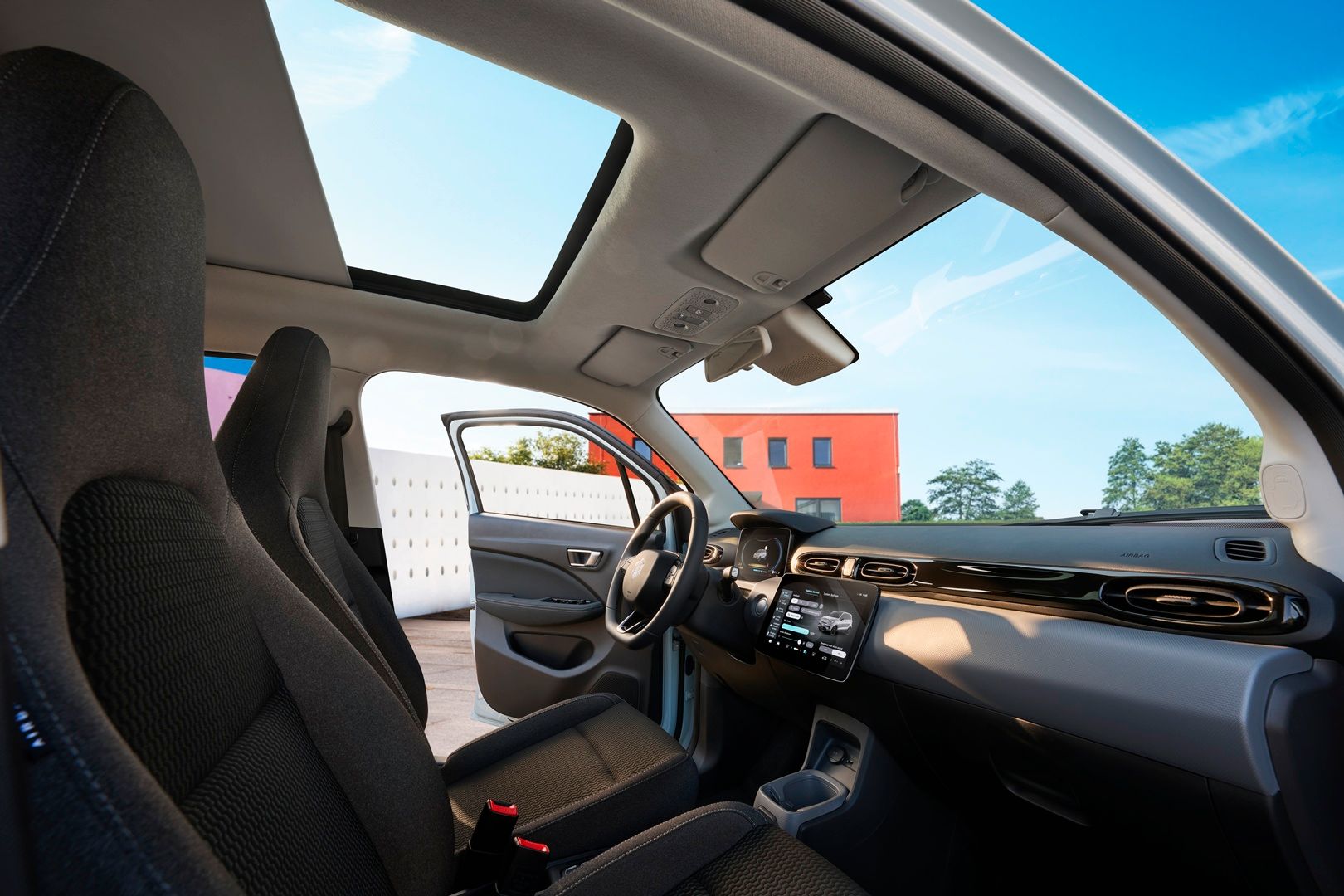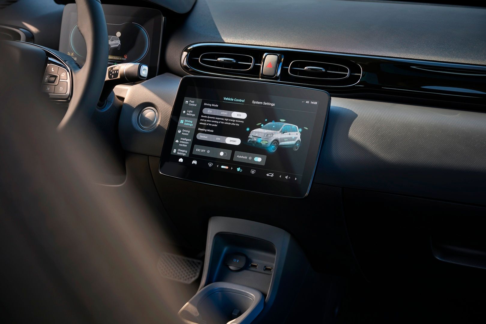 Dzięki nowoczesnej estetyce i najnowocześniejszym funkcjom technologicznym, model T03 oferuje niebanalną i zwinną mobilność miejską, zaprojektowaną w celu zaspokojenia potrzeb młodszej i bardziej nowoczesnej klienteli. Przestronne wnętrze w połączeniu z wyróżniającym się nadwoziem sprawiają, że jest to idealny i inteligentny wybór dla osób poszukujących kompaktowego pojazdu bez konieczności rezygnacji z komfortu, stylu i technologii – a wszystko to jest jeszcze bardziej atrakcyjne dzięki konkurencyjnej cenie. Pojazd o długości 3 620 mm, szerokości 1 652 mm, wysokości 1 577 mm i rozstawie osi wynoszącym 2 400 mm, wyposażony w pięcioro drzwi i cztery miejsca, idealnie nadaje się do miejskiej mobilności. Wygląd zewnętrzny charakteryzuje się zaokrąglonym, dynamicznym designem z linią boczną, która rozciąga się od przedniego błotnika aż do tylnych świateł, nadając pojazdowi poczucie szybkości i mocy. Design zewnętrzny modelu Leapmotor wzbogacają charakterystyczne elementy, takie jak zaokrąglony przedni pas, który nadaje pojazdowi przyjazny, niebanalny i wyrazisty wygląd. Panoramiczny dach i dwukolorowe wykończenie zwiększają jego atrakcyjność wizualną, a poziomy pasek z tyłu dodaje całości wyrafinowania. 15-calowe felgi aluminiowe z ramionami w kształcie płatków kwiatów dopełniają wyglądu zewnętrznego pojazdu, nadając mu sportowy i nowoczesny charakter. Dodatkowo model wyposażono w nowoczesny system oświetleniowy, na który składają się zakrzywione i ostre światła DRL LED z trybem automatycznym oraz funkcją „Follow Me Home”. Przyciągające uwagę tylne światła LED zyskały efektowny design i wyraziste krawędzie, co podkreśla ich nowoczesny styl. Pojazd jest wyposażony w 74 elementy LED, które gwarantują szybkie włączanie się i zapewniają lepszy efekt ostrzegawczy. Wreszcie, lusterka zewnętrzne są podgrzewane, regulowane elektrycznie i posiadają zintegrowane kierunkowskazy LED, zapewniając doskonałą widoczność. Wnętrze T03 jest wygodne i przestronne, z przestrzenią nad głową wynoszącą 960 mm dla tylnych siedzeń i 950 mm dla przednich siedzeń, co zapewnia duży komfort wszystkim pasażerom. Dostęp do pojazdu ułatwia pięcioro drzwi, a 42-calowy panoramiczny dach z elektryczną roletą przeciwsłoneczną zapewnia jasną i przewiewną atmosferę. Ponadto samochód jest wyposażony w najnowocześniejsze technologie, takie jak 8-calowy zestaw wskaźników LCD, który współpracuje z 10,1-calowym centralnym ekranem dotykowym. System jest niezwykle intuicyjny i pozwala kierowcy na łatwe zarządzanie systemem informacyjno-rozrywkowym, nawigacją, telefonem i sterowaniem głosowym. Dodatkowo, wielofunkcyjna kierownica wyposażona w przyciski ADAS, Bluetooth i przyciski do sterowania głosowego gwarantuje bezpieczną i komfortową jazdę.