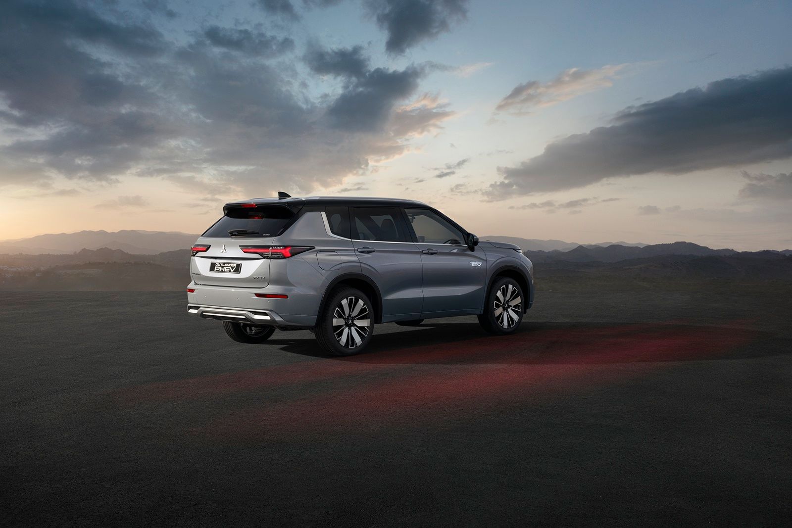Nowe Mitsubishi Outlander PHEV wyposażono standardowo w aluminiowe, 18-calowe felgi oraz opony 235/60R18. Zwracają uwagę zewnętrznie czarne elementy nadwozia: wykończenie nadkoli, wykończenie narożników przedniego i tylnego zderzaka, a także ich dolne elementy. Matowo-czarne są także powłoki słupka B i C.