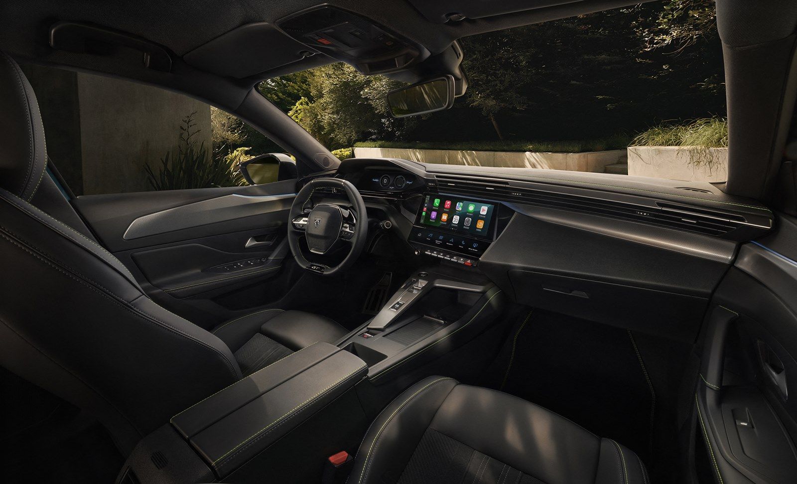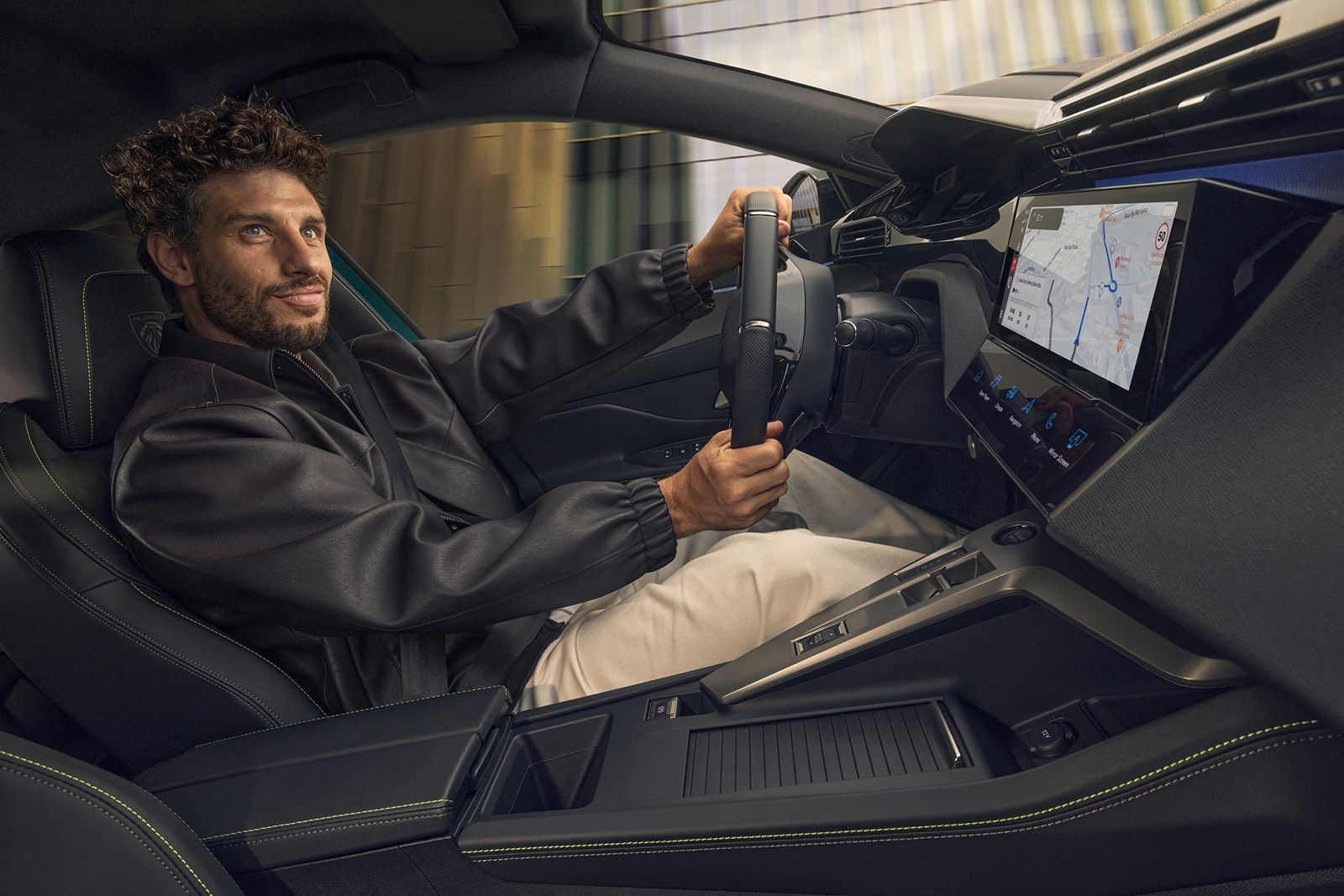 Za kierownicą czujesz, że to Peugeot: kompaktowa kierownica, czytelne zegary i nowa grafika 3D (standard w GT Exclusive), 5 personalizowanych i-Toggles pod ekranem 10" i oświetlenie ambientowe (8 kolorów). Materiały? Aluminium i Alcantara® w topowych specyfikacjach – elegancja bez ostentacji.