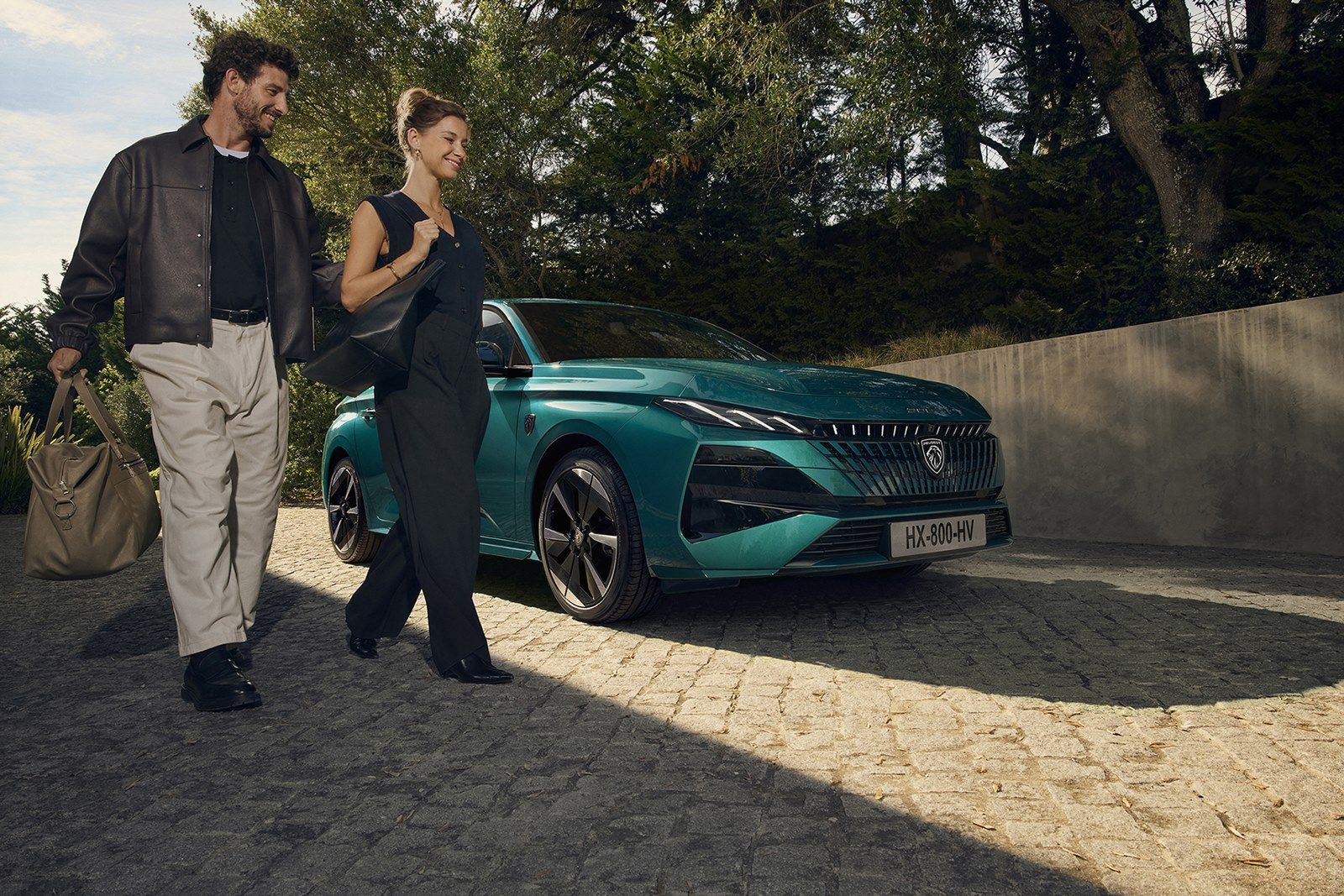 Peugeot zaczyna od mocnego akcentu: to pierwszy model marki z podświetlanym logo. Grill zintegrowano z karoserią, a wloty powietrza w skrajnych partiach zderzaka poprawiają aerodynamikę, co wprost przekłada się na niższe zużycie paliwa i większy zasięg w odmianach zelektryfikowanych. W wersjach GT/GT Exclusive pojawia się także podświetlany pas przedni i światła Matrix LED (Full LED w niższych wersjach). Sygnatura „trzech pazurów” jest teraz jeszcze bardziej wyrazista – i z przodu, i z tyłu.