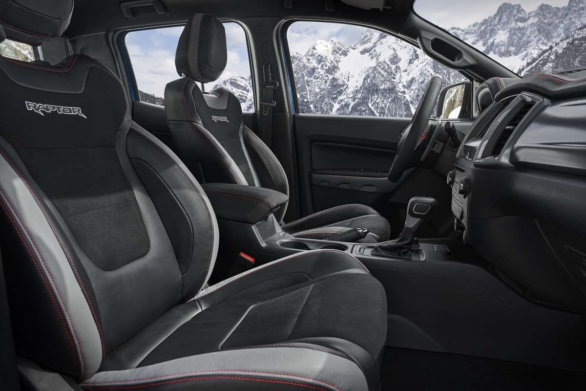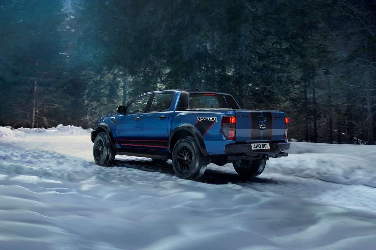 Nowy Ranger Raptor Special Edition dostępny w charakterystycznych kolorach Performance Blue, Conquer Grey i Frozen White, otrzymał dodatkowo podwójne matowe czarne pasy wyścigowe z czerwonymi liniami kontrastowymi na masce, dachu, na dolnej części boków nadwozia, tylnych błotnikach i drzwiach skrzyni ładunkowej, co jeszcze wyraźniej podkreśla sportowe ambicje pickupa. W uzupełnieniu charakterystycznych wyścigowych pasów, przednie zaczepy holownicze wykończone są w kolorze czerwonym, natomiast poszerzone nadkola, przedni i tylny zderzak, klamki drzwi oraz typowy przedni wlot powietrza wykończone są matową czernią, aby stworzyć jeszcze większe wrażenie, eliminując szare elementy nadwozia standardowego Raptora. Czerwone przeszycia na kierownicy, desce rozdzielczej i drzwiach nadają wnętrzu Rangera Raptora Special Edition jeszcze bardziej sportowy i wyjątkowy charakter. Fotele wchodzące w skład wyposażenia standardowego wykończono wysokogatunkową skórą i zaprojektowano tak, by zapewniały wygodę i wsparcie zarówno w trudnym terenie, jak i na autostradzie. Wyjątkowość wnętrza wzmacnia dodatkowo czarna, matowa deska rozdzielcza.