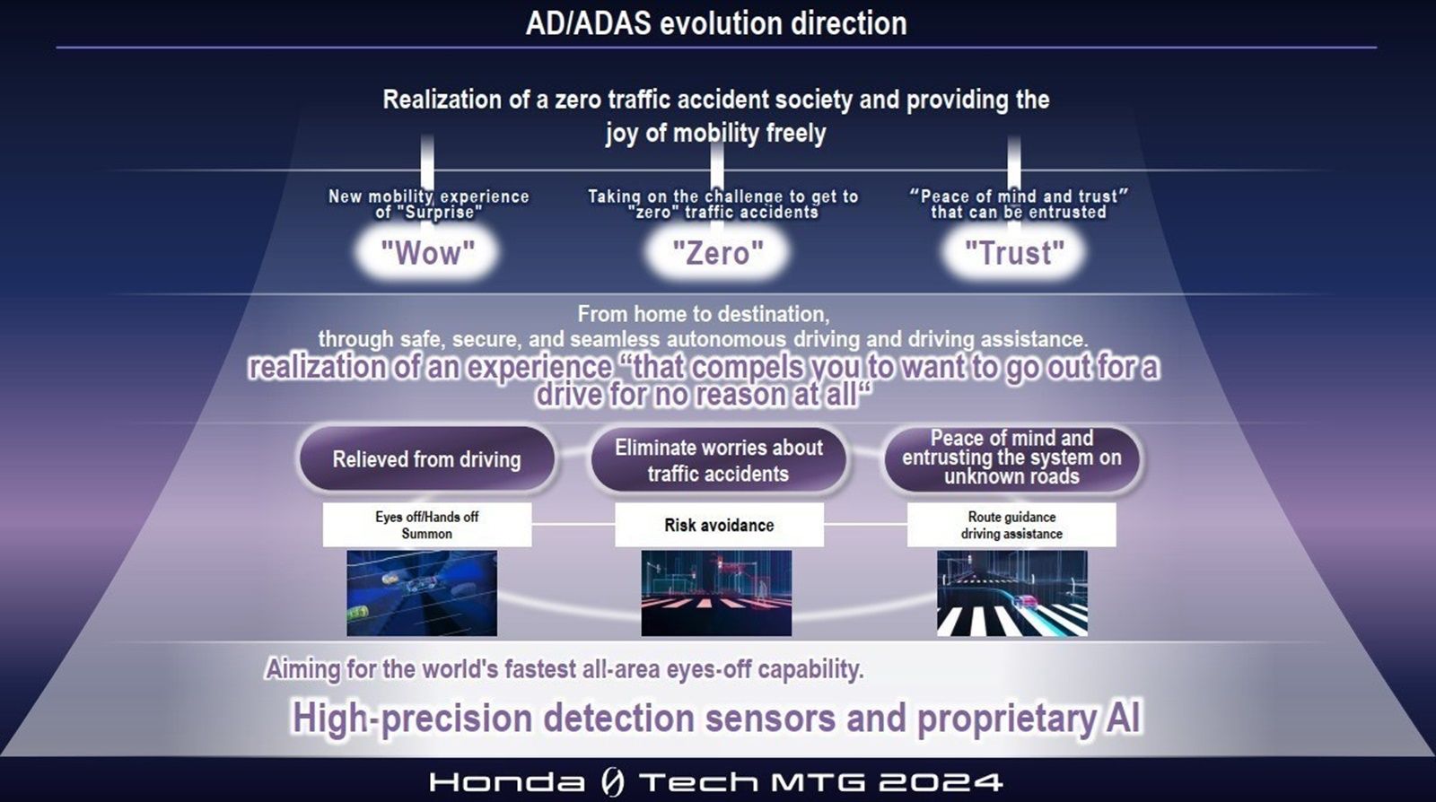 Dzięki postępowi w zakresie tej technologii firma Honda będzie dążyć do stania się pierwszą firmą na świecie, która rozszerzy zakres stosowania funkcji umożliwiającej oderwanie wzroku we wszystkich sytuacjach na drodze i zapewni bezpieczniejszy system AD/ADAS, gwarantujący klientom większy spokój ducha.