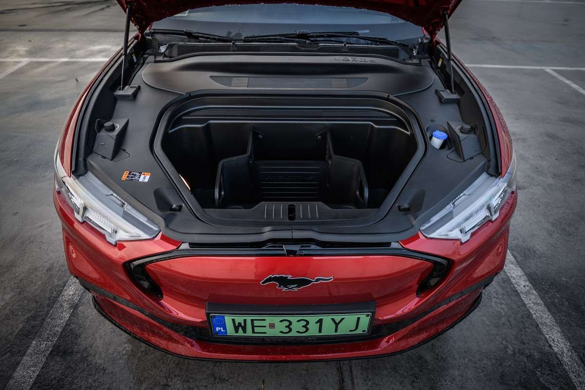 Dodatkowo Mach-E może pochwalić się bagażnikiem z przodu o pojemności 81 litrów. To idealne miejsce np. na kilka toreb z zakupami, albo schowanie kabli do ładowania. Co równie ważne, ten bagażnik został tak zaprojektowany, że można w nim przechowywać choćby zabłocone buty, czy mokre ubrania. Ma on bowiem korek spustowy i bez problemu można go umyć. A to dodatkowa zachęta do inspirujących wojaży tym całkowicie elektrycznym SUV-em.