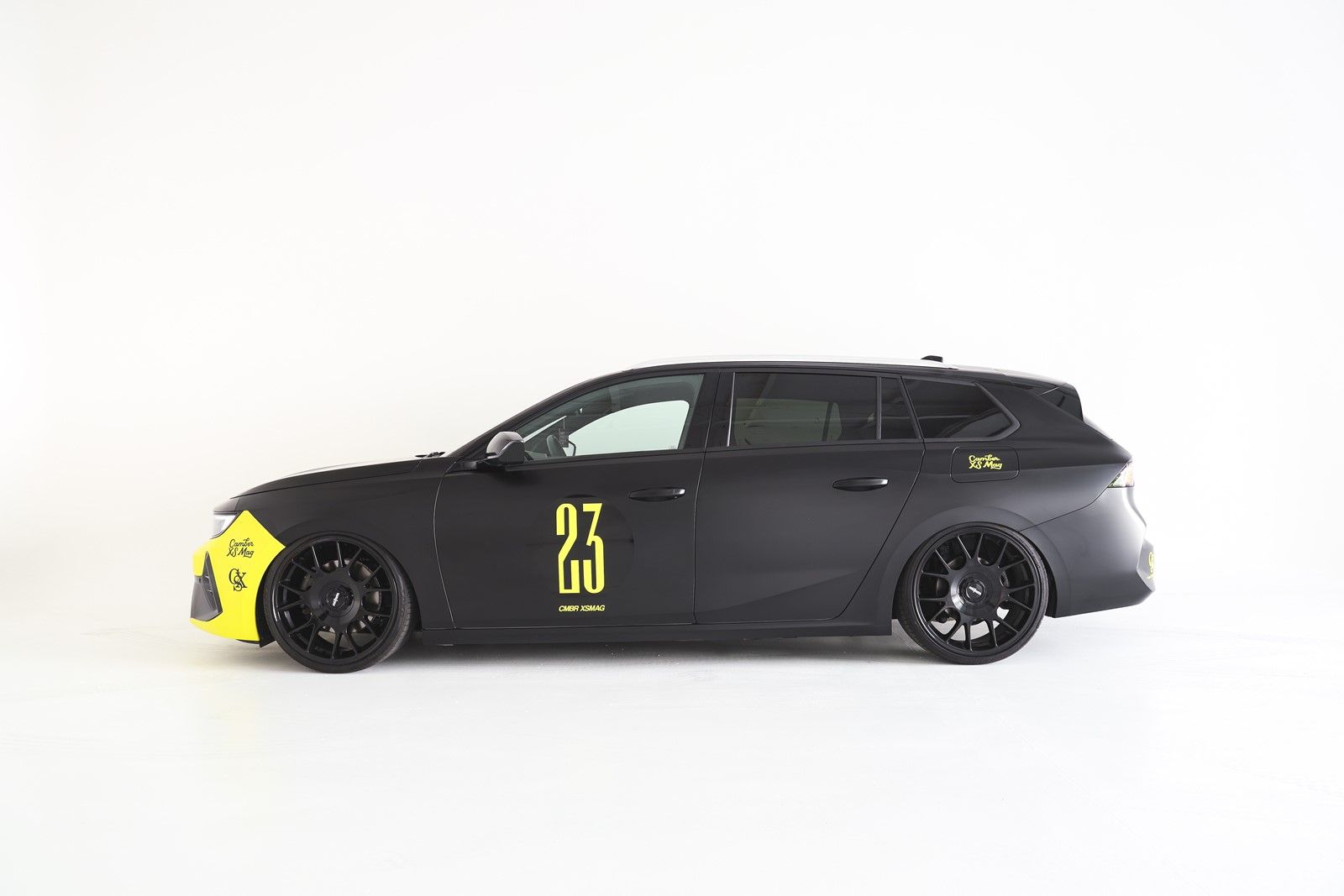 Specjaliści z XS Carnight zajęli się również Oplem Astrą Sports Tourer GSe i pokazali go publiczności podczas weekendu. Dynamiczny, topowy model z rodziny Astry już swoim symbolem (GSe oznacza „Grand Sport electric”) pokazuje, czego można się po nim spodziewać: moc systemowa wynosząca 165 kW/225 KM (zużycie paliwa według cyklu WLTP1: 1.2-1.1 l /100 km, emisja CO2 26-25 g/km; wartości w cyklu mieszanym), maksymalny moment obrotowy 360 Nm i specjalne, obniżone o 10 milimetrów zawieszenie, zapewniają czystą przyjemność z jazdy nawet w wersji pochodzącej z seryjnej produkcji, a dzięki napędowi hybrydowemu plug-in także lokalnie bezemisyjną jazdę. Warsztat tuningowy „Carstyle me” zamontował również zawieszenie pneumatyczne „GRINDS”. Kombi w stylizacji XS przyciąga wzrok także specjalnymi 20-calowymi kołami amerykańskiego producenta felg „ROTIFORM” i oczywiście charakterystycznymi naklejkami XS.